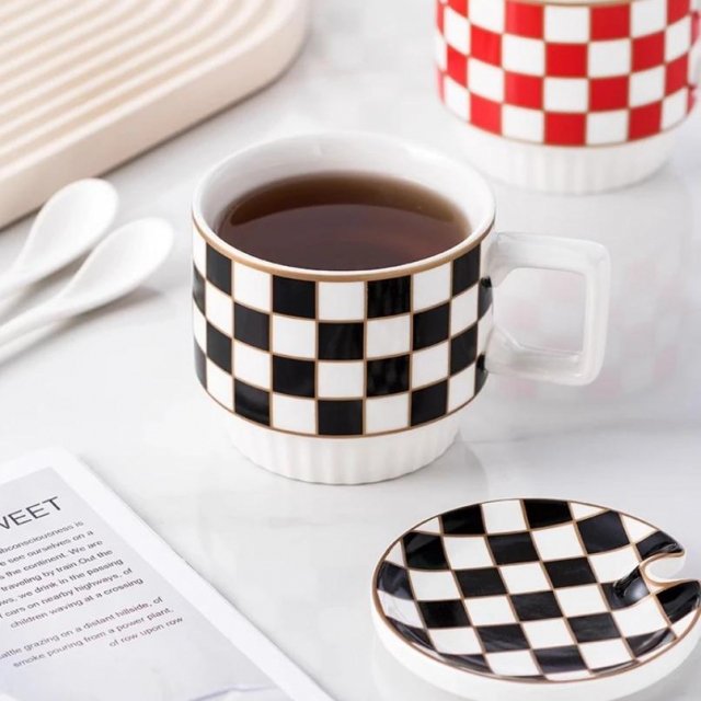 Bring order and style to your bathroom or vanity today. Add this elegant plaid ceramic storage cup to your home and enjoy a more organized, beautiful space every day.